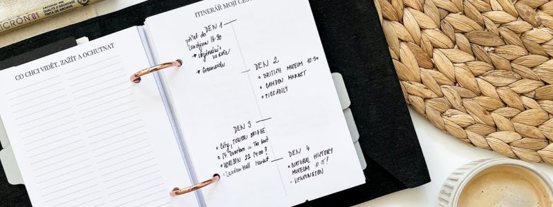 Cestovatelská náplň je váš spolehlivý průvodce při plánování vysněných dovolených i kratších výletů. Je to osobní prostor, kde si krok za krokem připravíte itinerář, sepíšete všechny důležité detaily a nakonec si v něm uchováte i ty nejkrásnější vzpomínky.